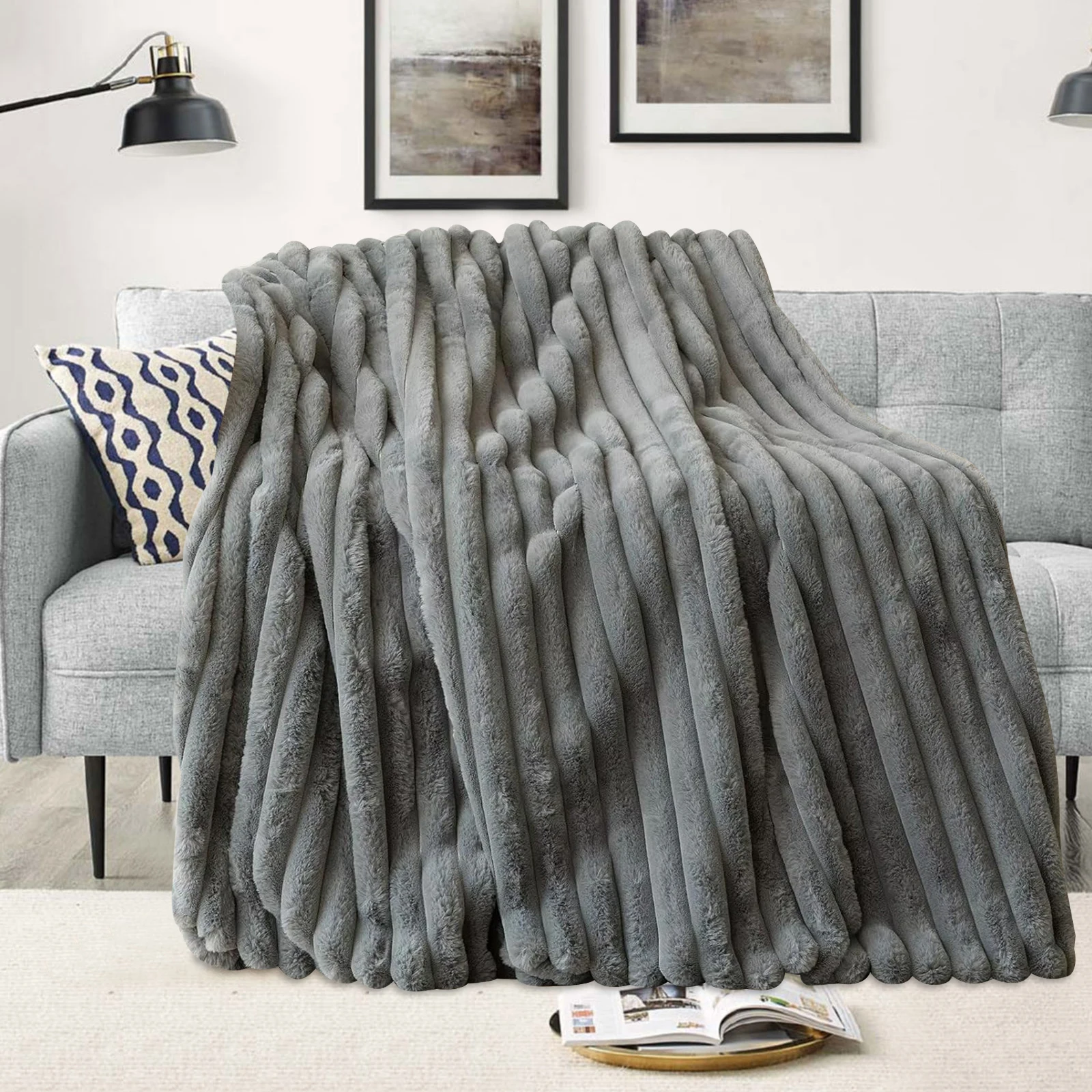 • Package: 1 x Calmly Faux Fur Plush Blanket in your chosen size and colour (dark grey, apricot, or white).